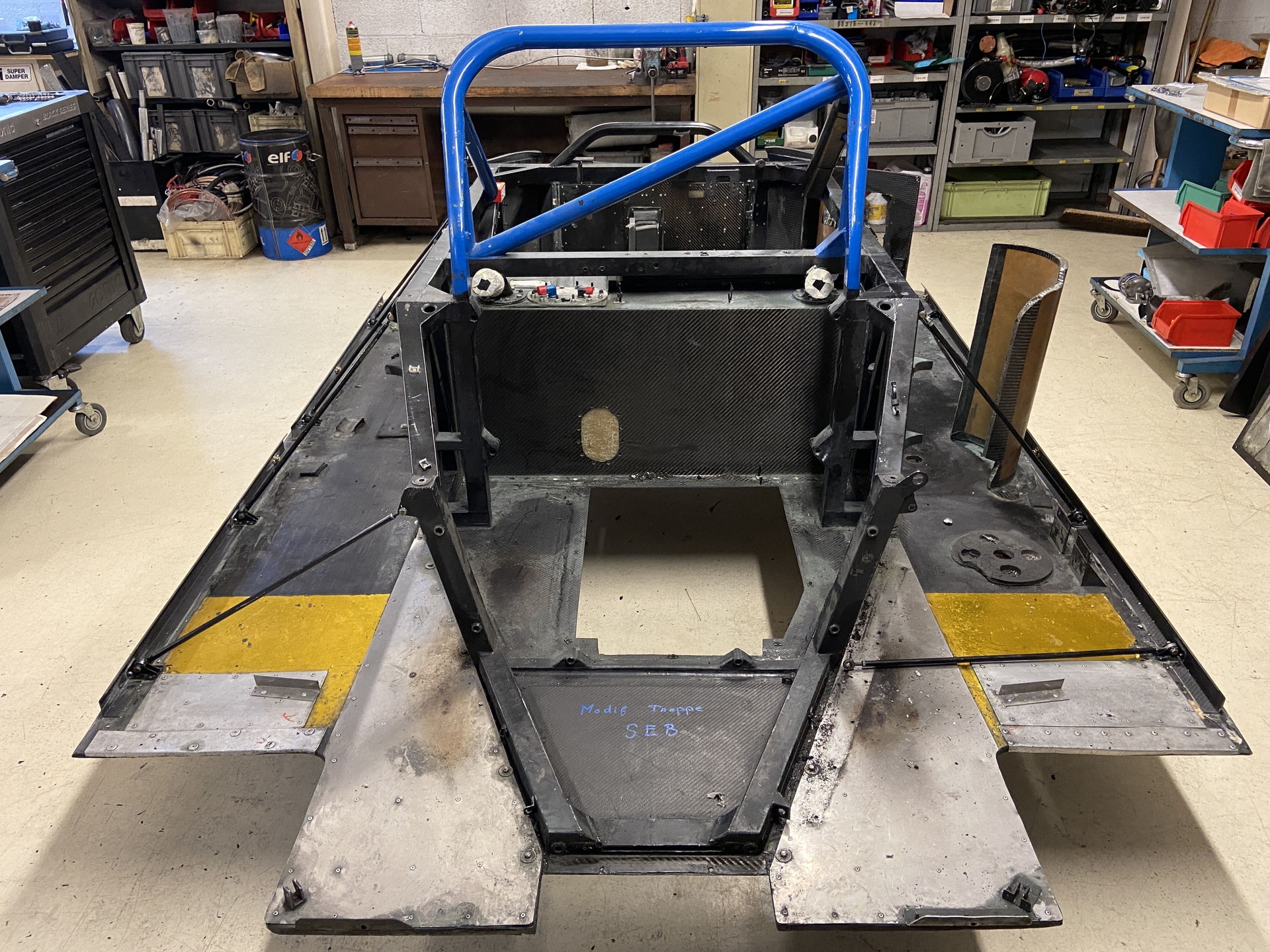 - Châssis : multitubulaire acier avec panneaux carbone collés structurellement